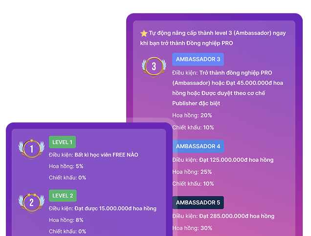 Bạn sẽ nhận hoa hồng 20% (1.200.000 VND) cho mỗi đăng ký thành công.